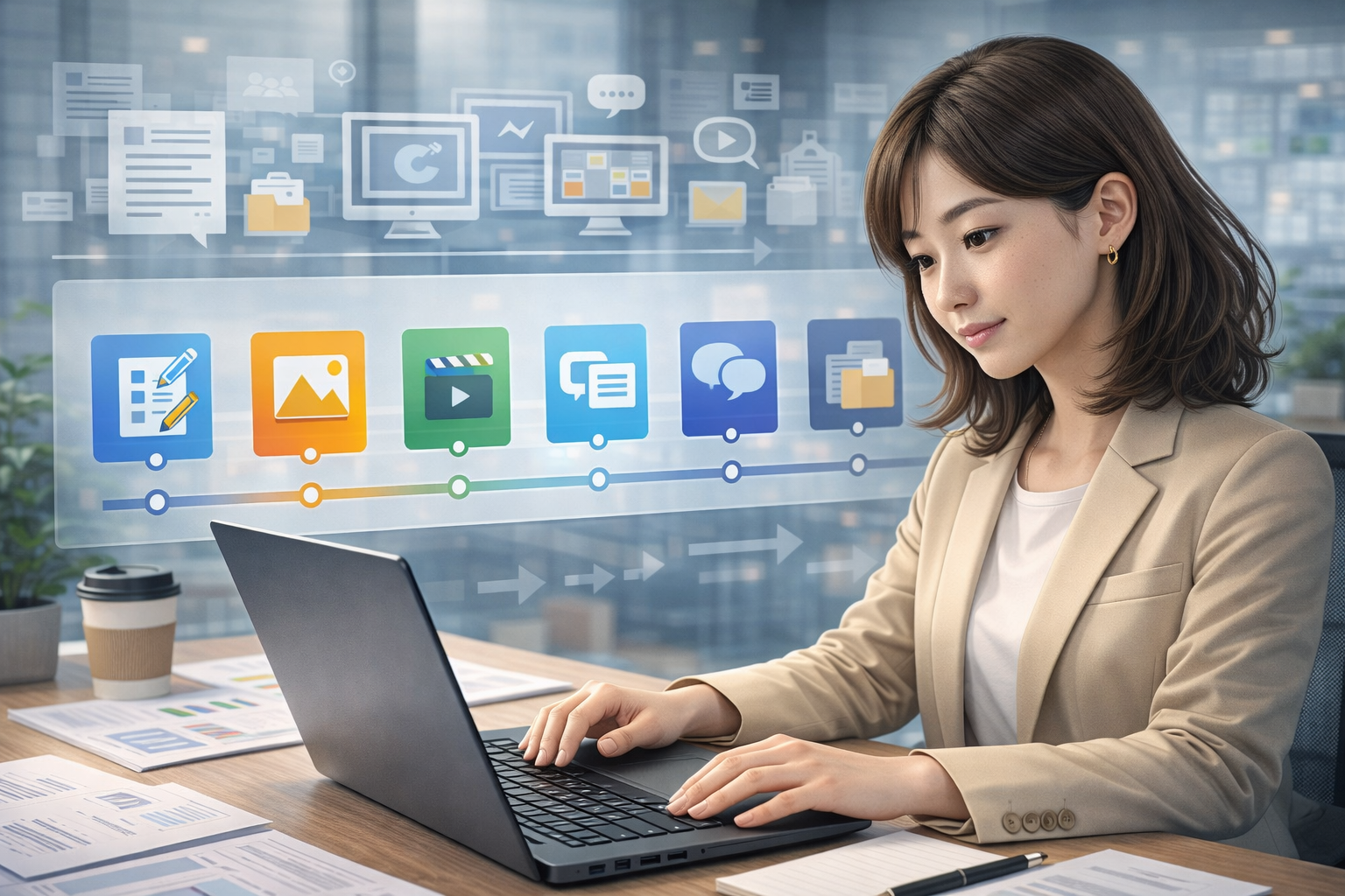 AIの業務活用は、文章、画像、動画、情報整理、SNS運用、事務作業のように対象が変わっても、使いどころには共通点がある。